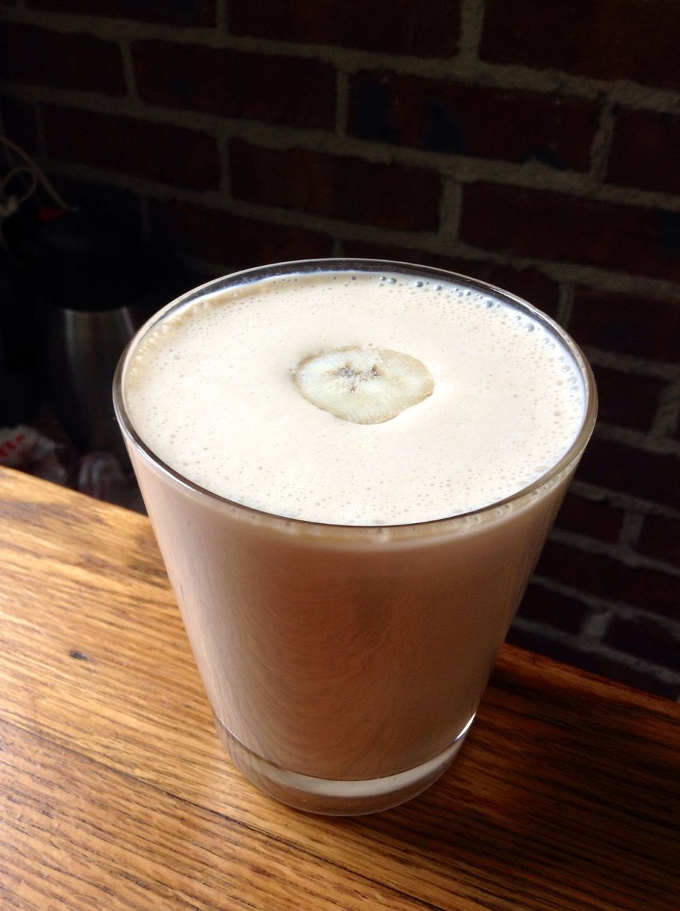 Pour the frothed part on top, add a slice of banana for a good touch, and drink up this beautiful concoction that Mother Nature has produced for us 💛🍃🌺