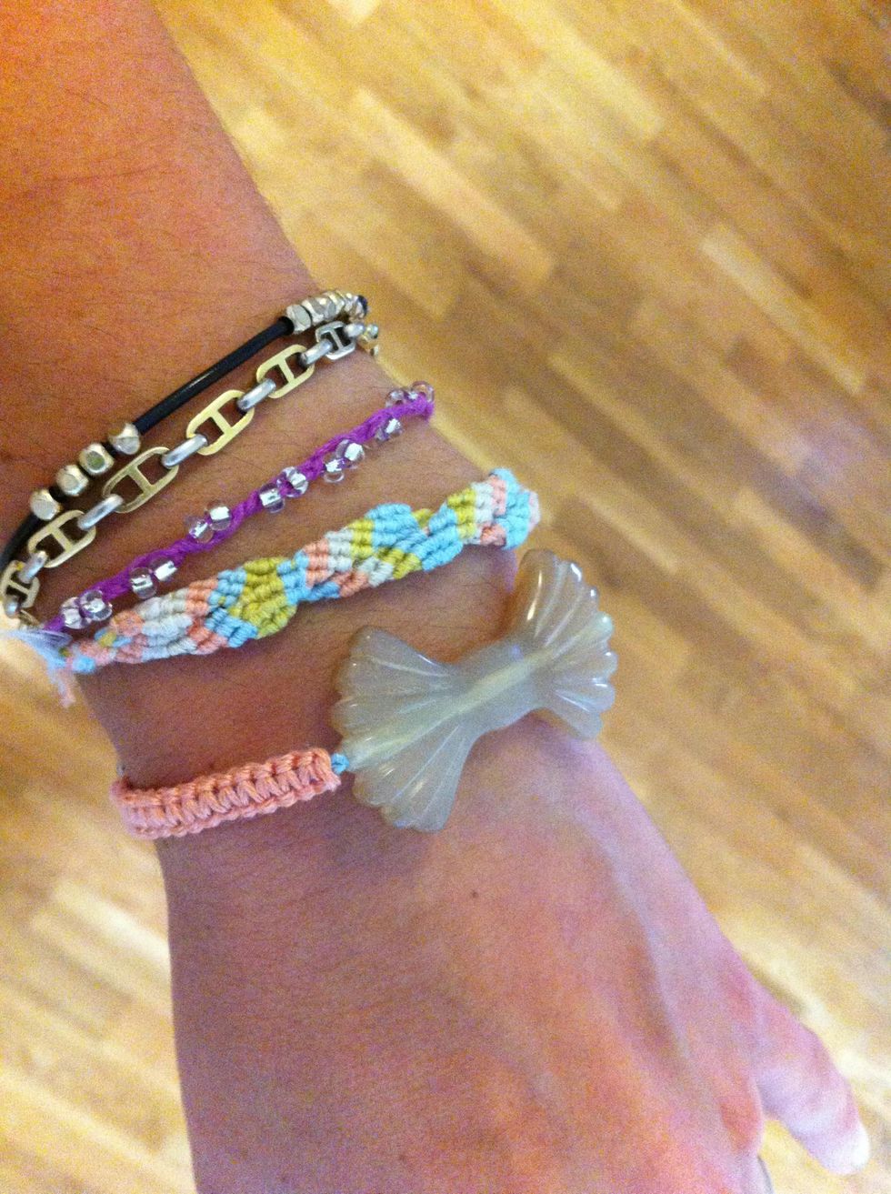 Keep alternating knotting sides. This is what it should be looking like. Once finished knotting down this side of the charm, take the second 60cm pink cord and do the other...
