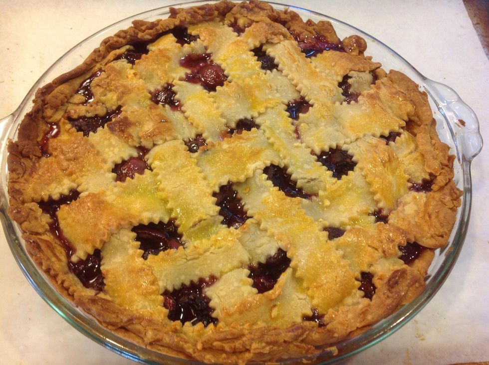 I chose to do lattice work on this pie. Cut long strips from pie crust top.