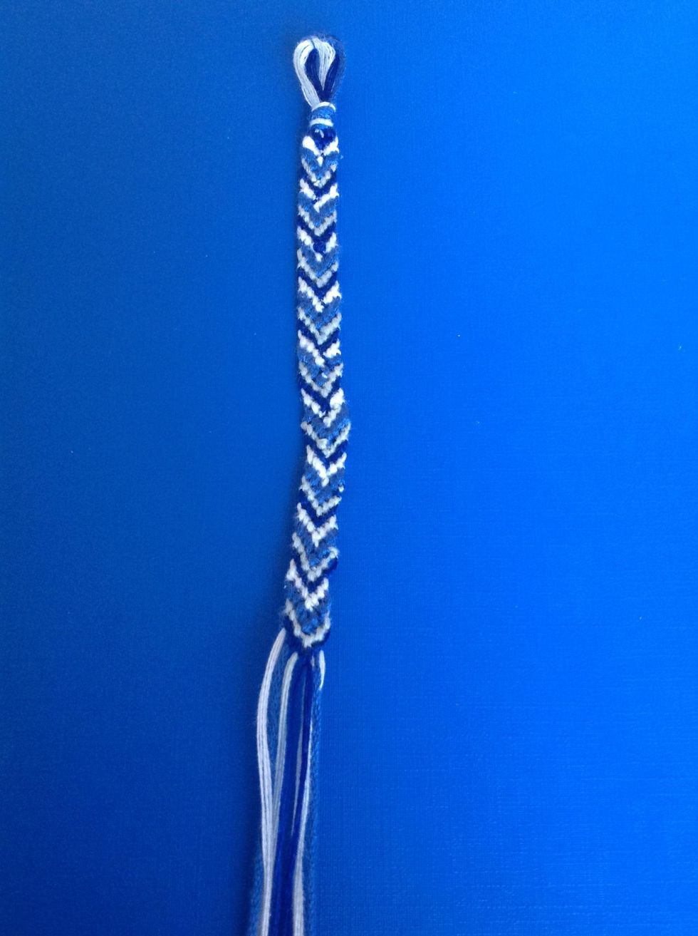Sorry I forgot to show, but when the bracelet is finished, tie a knot. Then thread the button through the thread and tie a knot. Cut off the excess string.