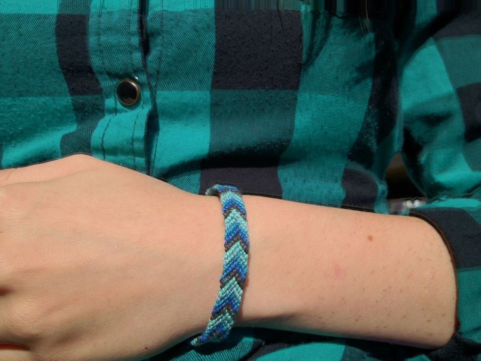 This bracelet will take time and patience to complete. It doesn't matter how many different colors of strings your use, as long as you follow these steps. The more colors, the thicker the bracelet.