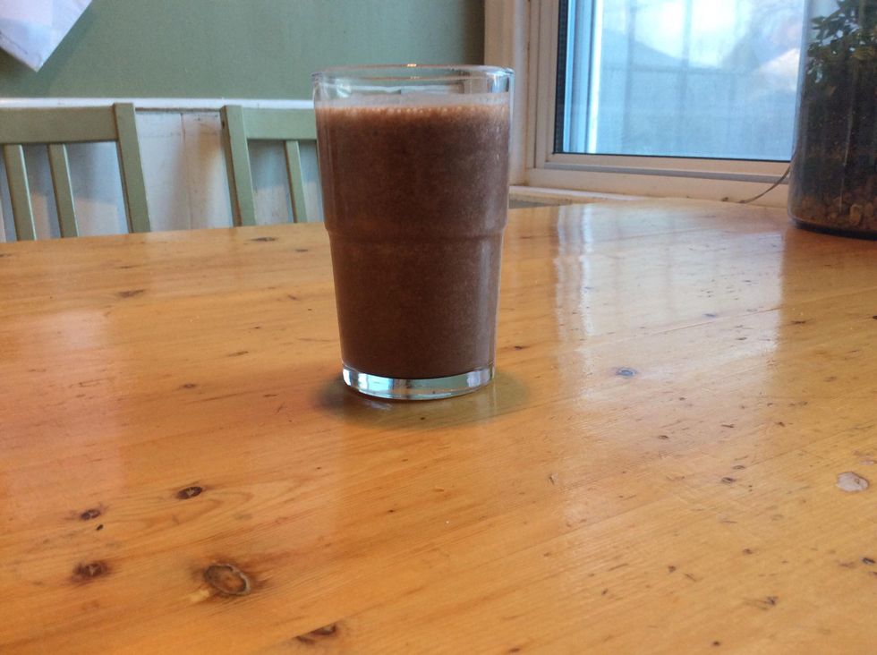 First put 1 cup of ice and 1 of milk in the electric blender and blend for about 10 seconds.