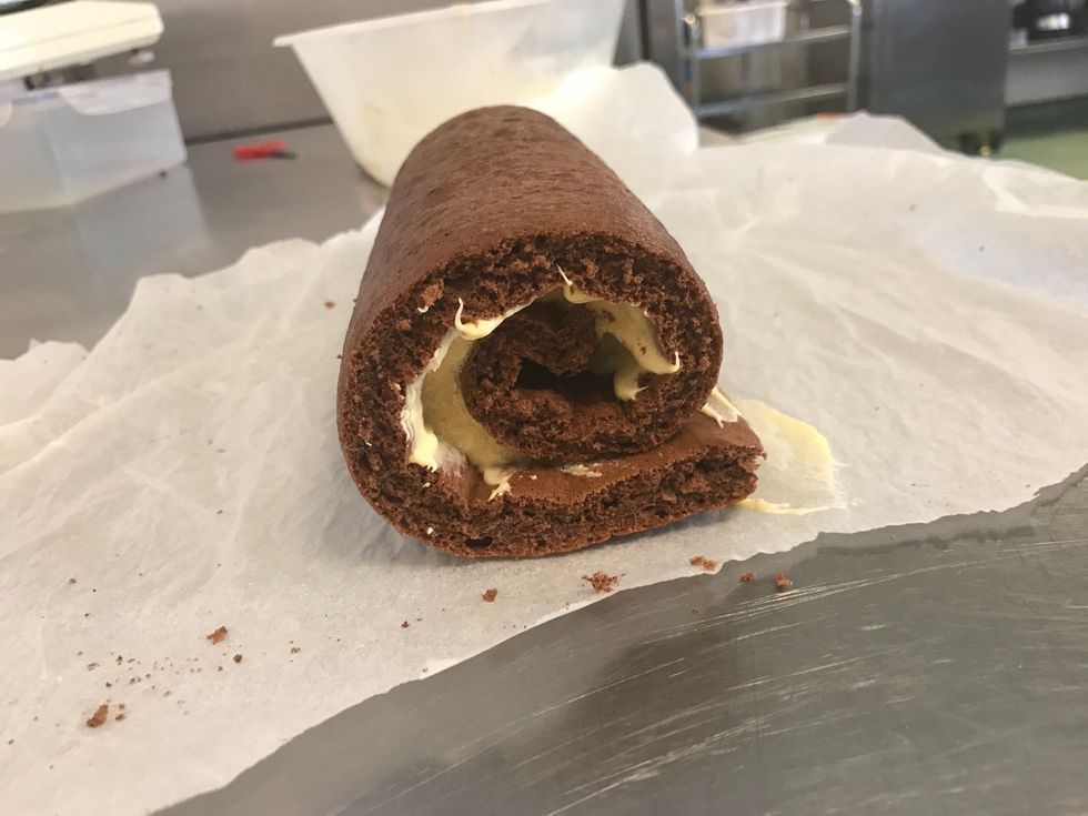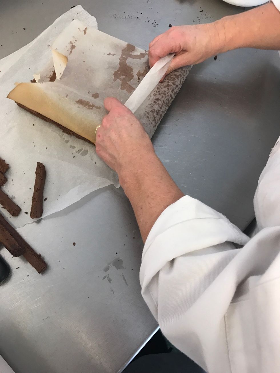 Then lightly sieve half the flour and cocoa powder on to the mixture and fold gently After all the flour and cocoa power is mixed in repeat this process