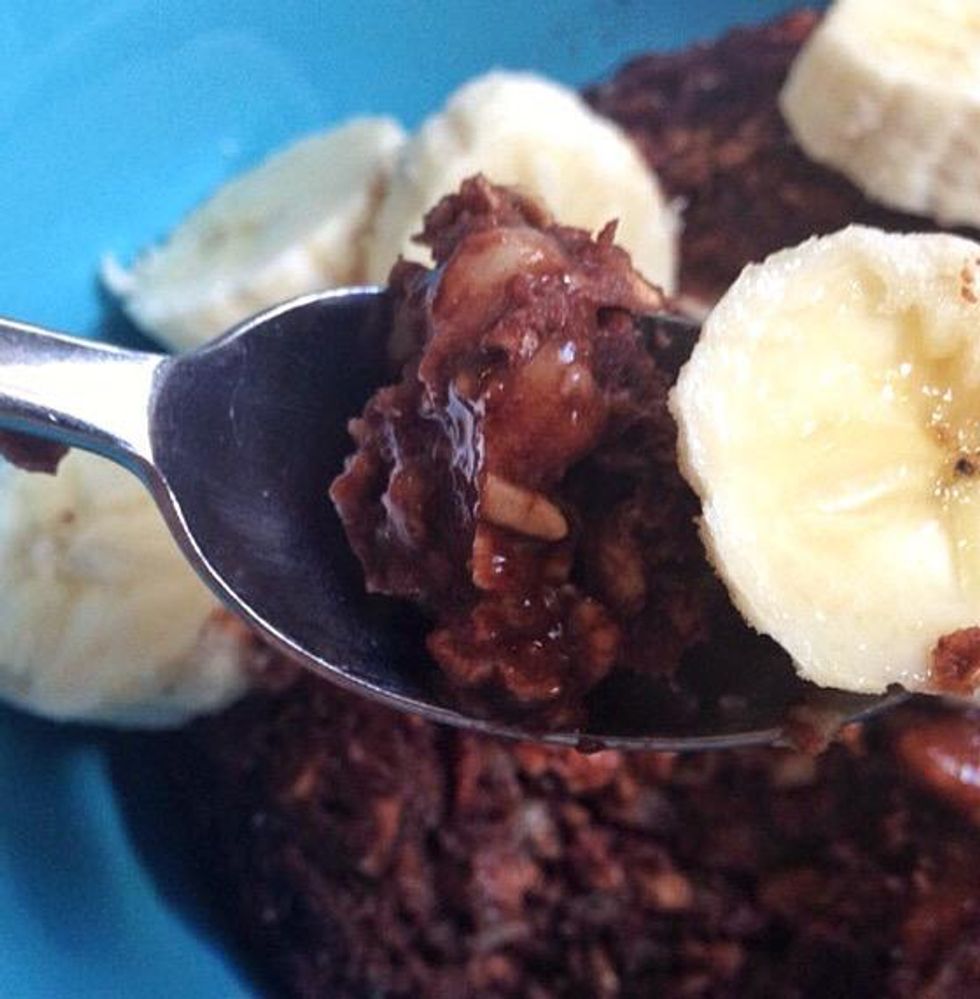 Serve with sliced bananas or whatever you prefer. Mine was a bit runny in the middle but since it was also a little burnt on the edges (due to an old micro) I decided to eat it like this.