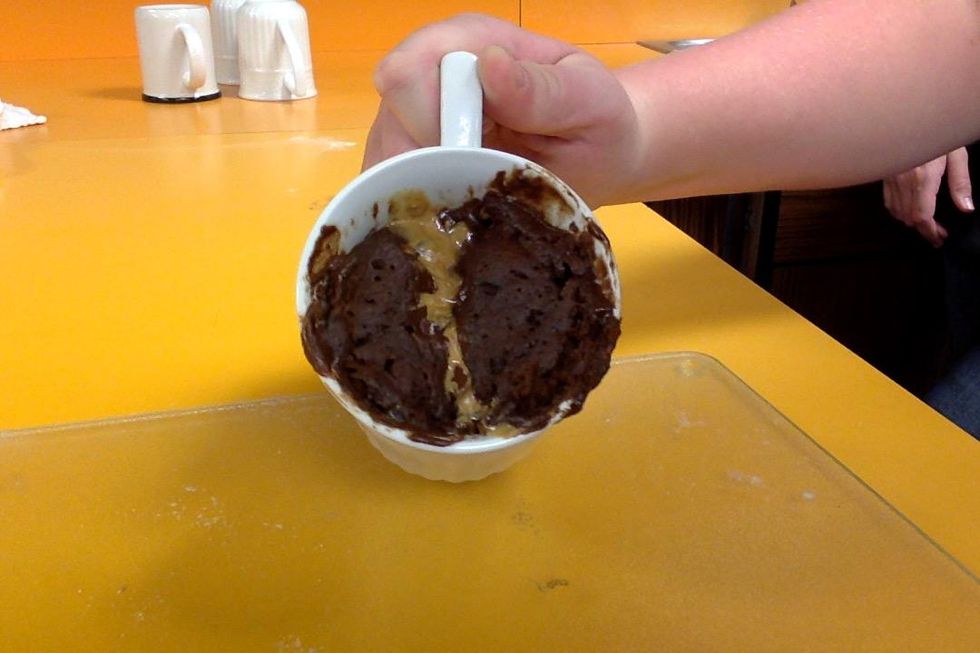 Pour batter into a 14 ounce (or larger) microwave-safe mug with straight sides.