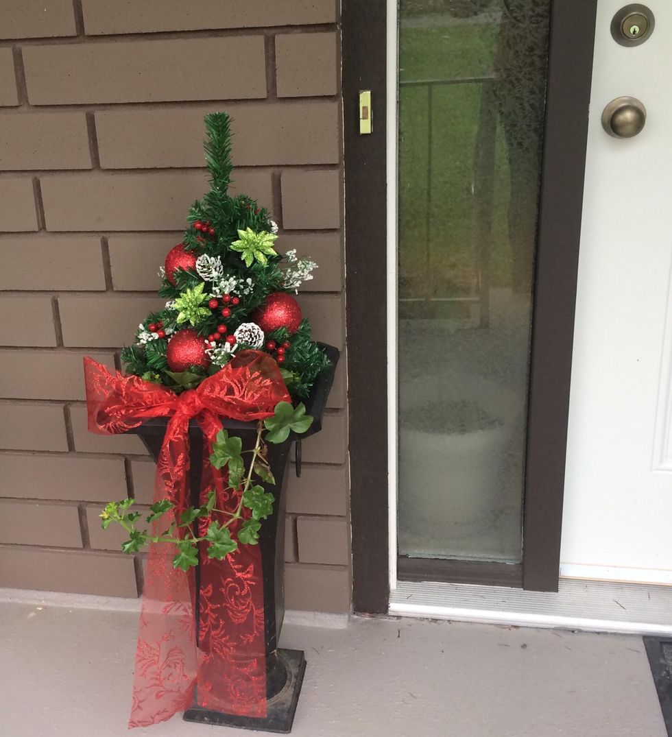 Both trees "planted" and ready to be decorated.
