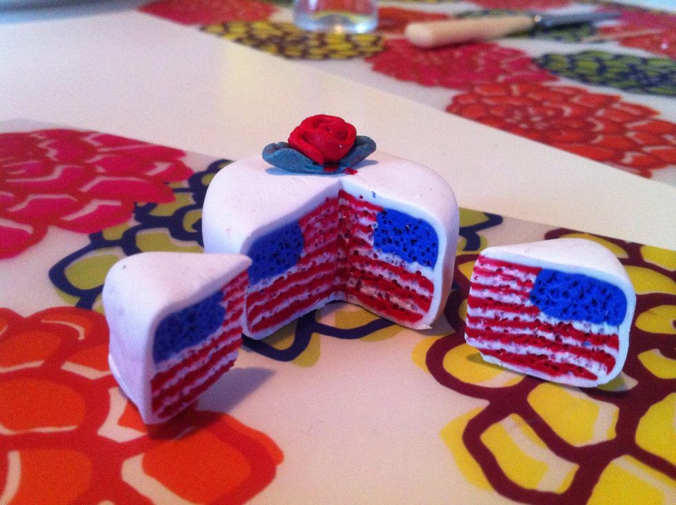My friend Will Now show you how to make a american flag cake made of clay!