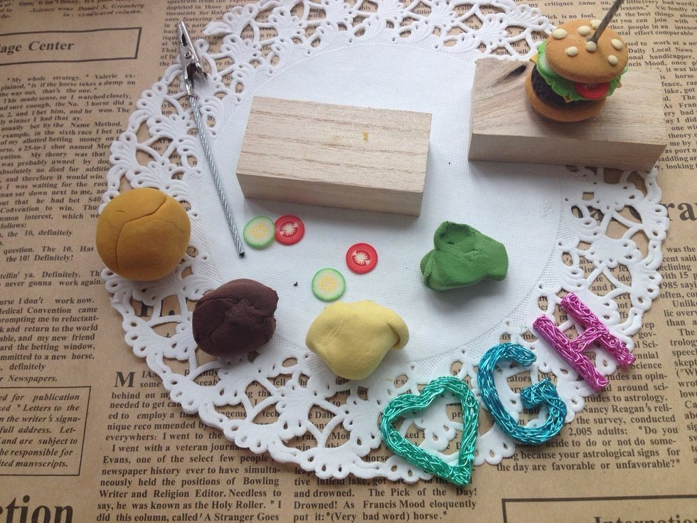 - Use the light yellow clay to make some balls and glue on to make the sesames.