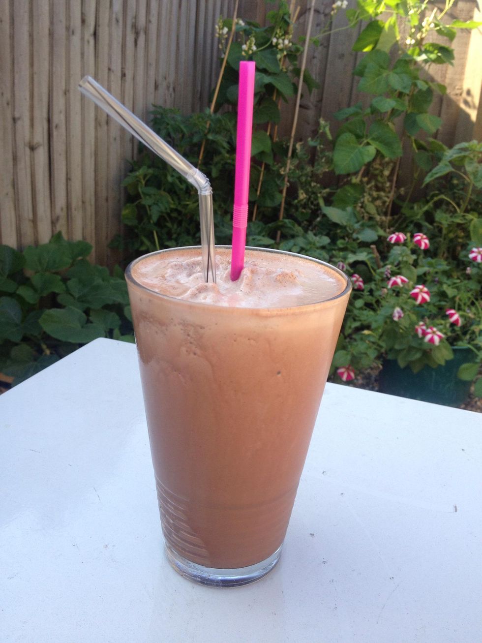 Here is your chocolate flavoured protein frappe. You can choose how you want to flavour it. Leave the cocoa out for just a coffee flavour, add a spot of peppermint for mint choc etc.