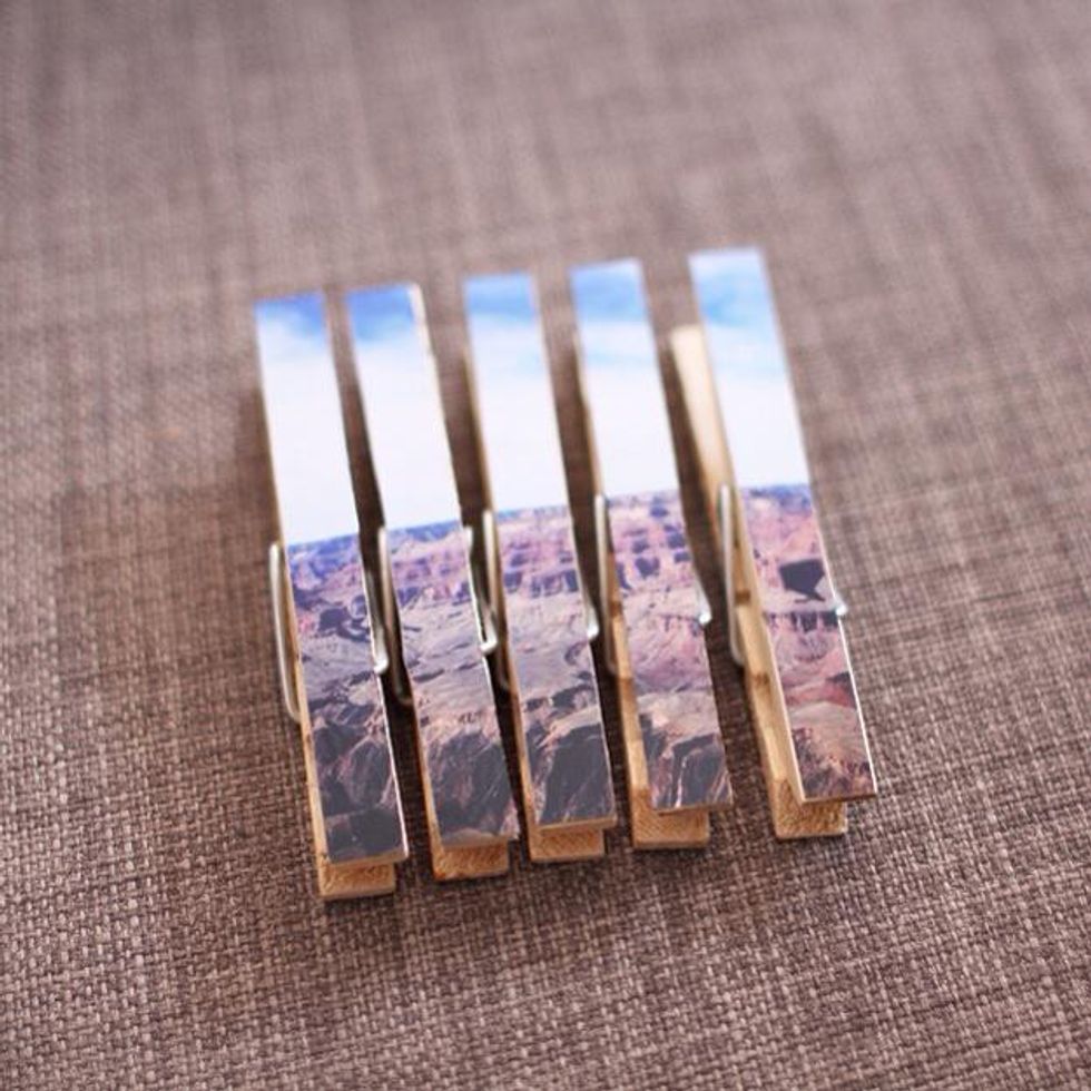Measure out the width of one clothpin on one edge of the photo print. Use X-Acto to cut the length, or use pen to mark and cut with the scissors.