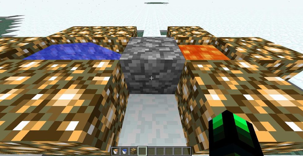 and then break block between water and lava. it's done! you will see cobble stone forming at middle