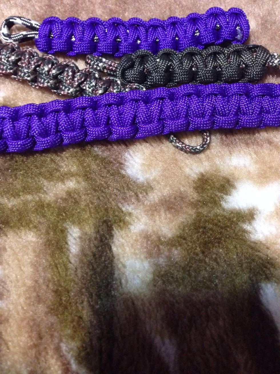 Cut about a 4 foot long for the color design of the cobra stitch, and fold it in half. Then your going to want to put the half of the string behind the base.
