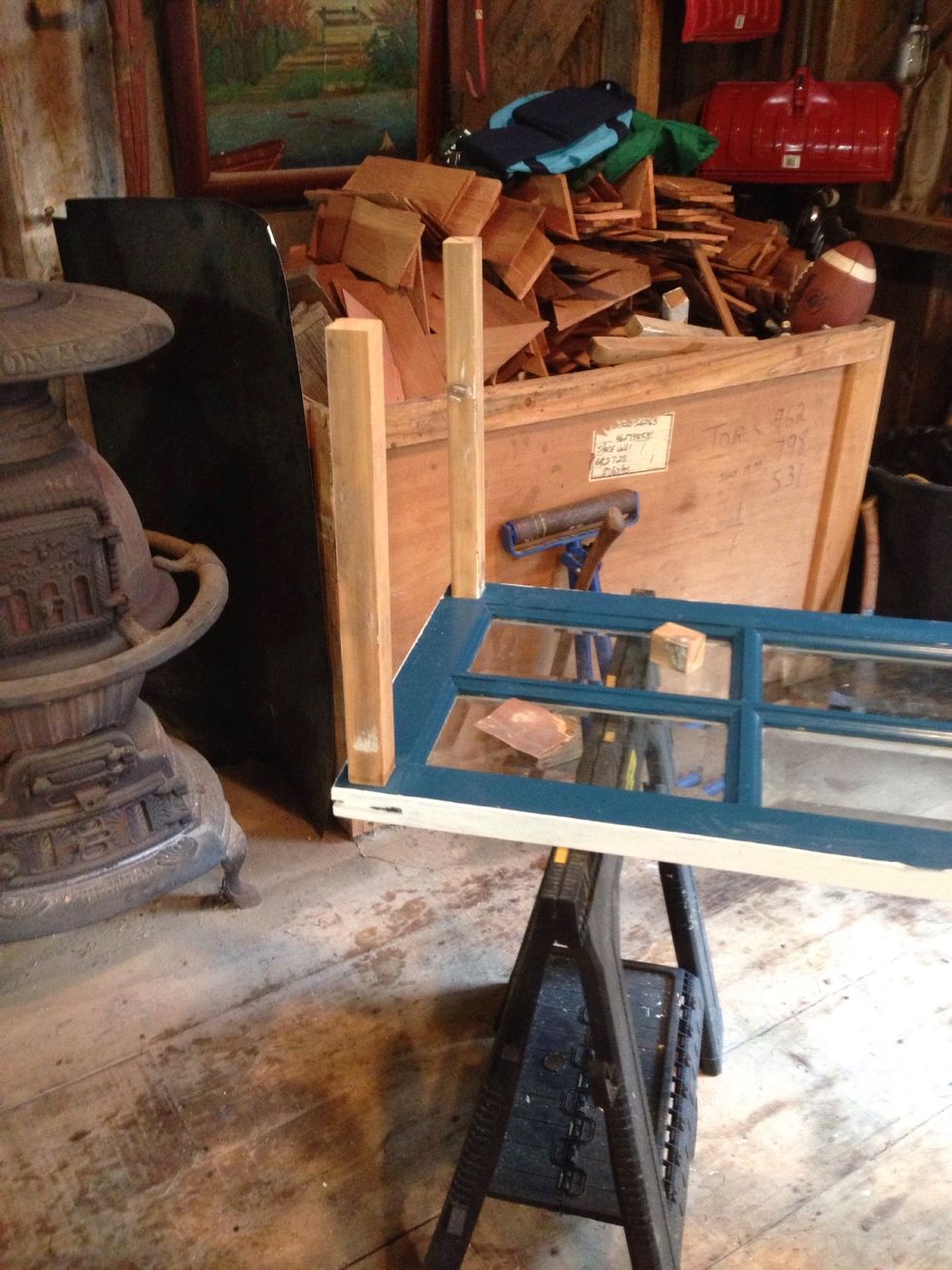 For legs, I used old cedar bars from an old deck. You could also use new wood too.