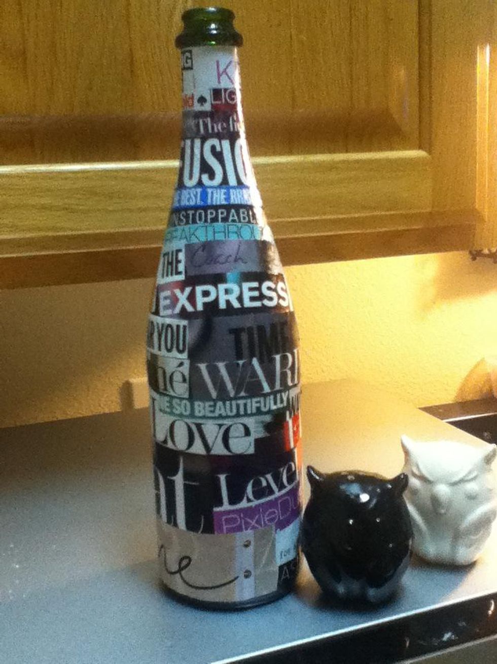 Start at the top and put a little modge podge on the back of the paper and stick it on. If the words don't line up it looks more interesting.