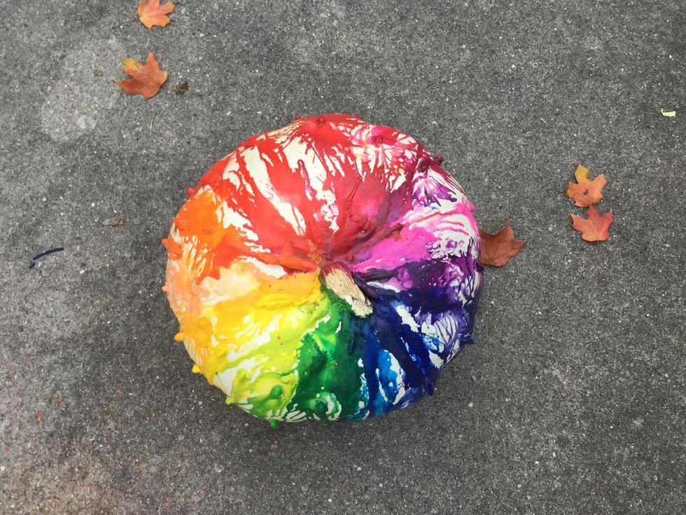Take your remaining crayon halves and glue them in spots that have not been fully covered by the melted wax (you may not need this step). Repeat step 5 until you get your desired flow of colors.