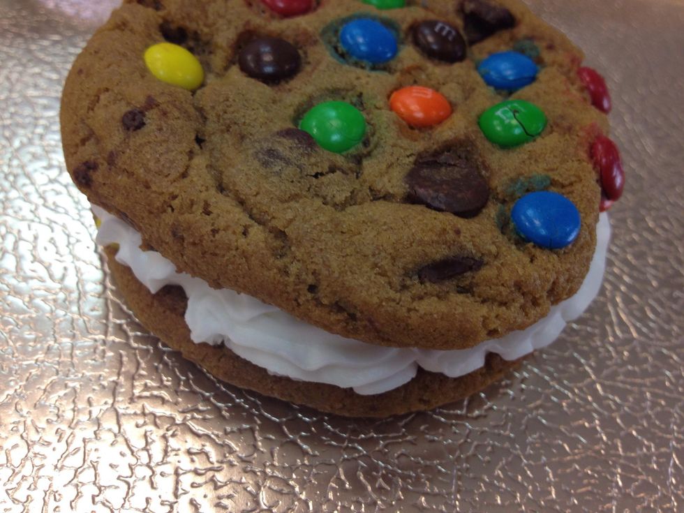 Start with two cookies, don't have to be the same kind either ;)Start by doing the border in vanilla frosting. Make it thick!Now fill it in.Now put other cookie on top.. Now you have a doozie. Great for birthdays! Or treats here and there :)