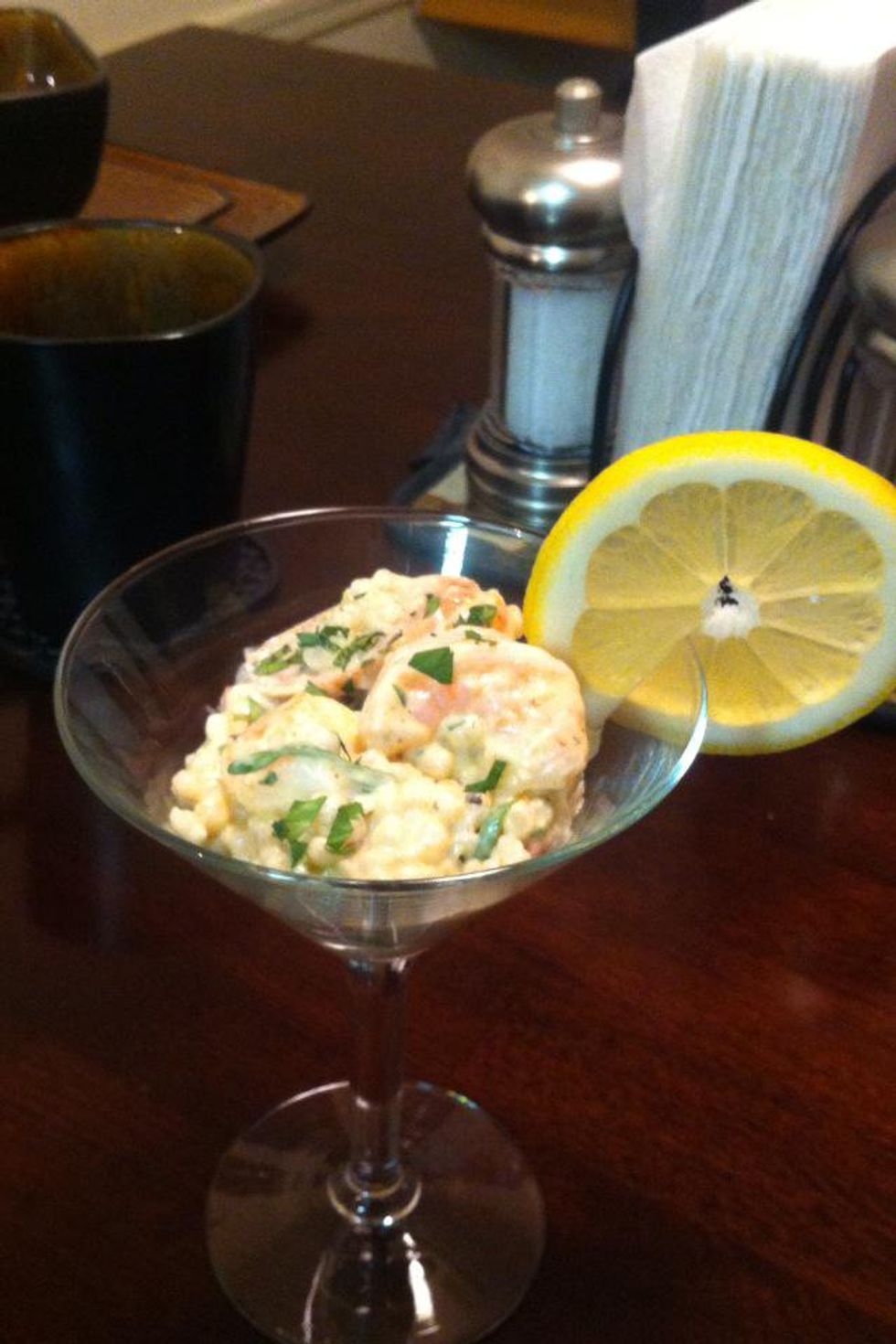 Spoon your mixture into a martini glass and garnish with slice of lemon. And serve. You can also sprinkle some chopped parsley over the top.