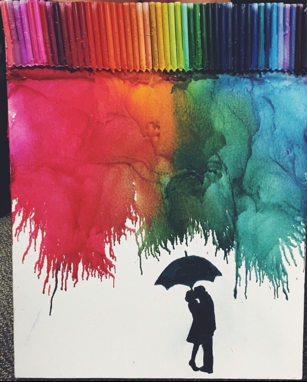Once the crayons have started melting move the hair dryer in different motions to make the colors blend.
