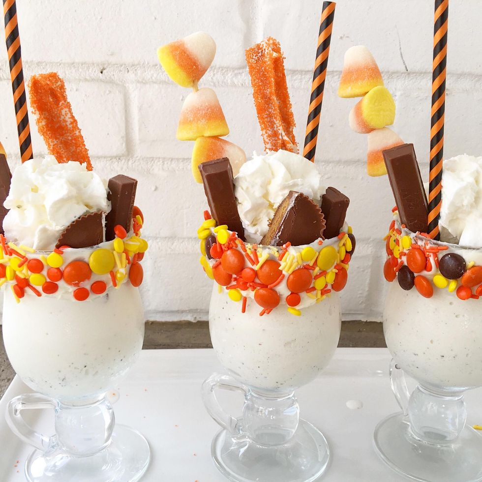Garnish with candies. For this treat, I skewered candy corn gummies on a kabob stick and iced the top of a pirouette and dusted it with orange sanding sugar. The options are limitless!
