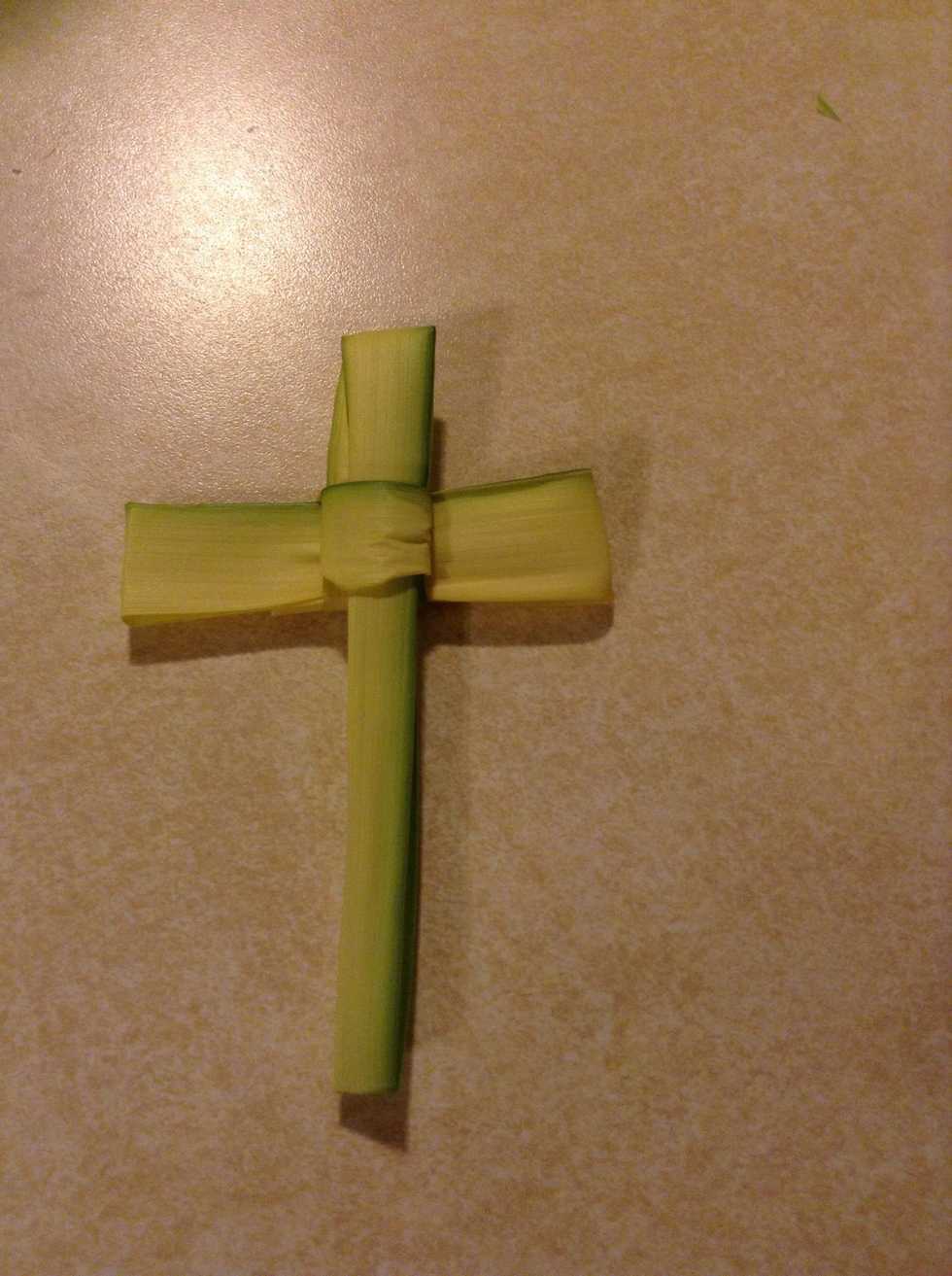 Now fold down the small top end and push it through the front fold. Leave it at the length you want the top of the cross to be.