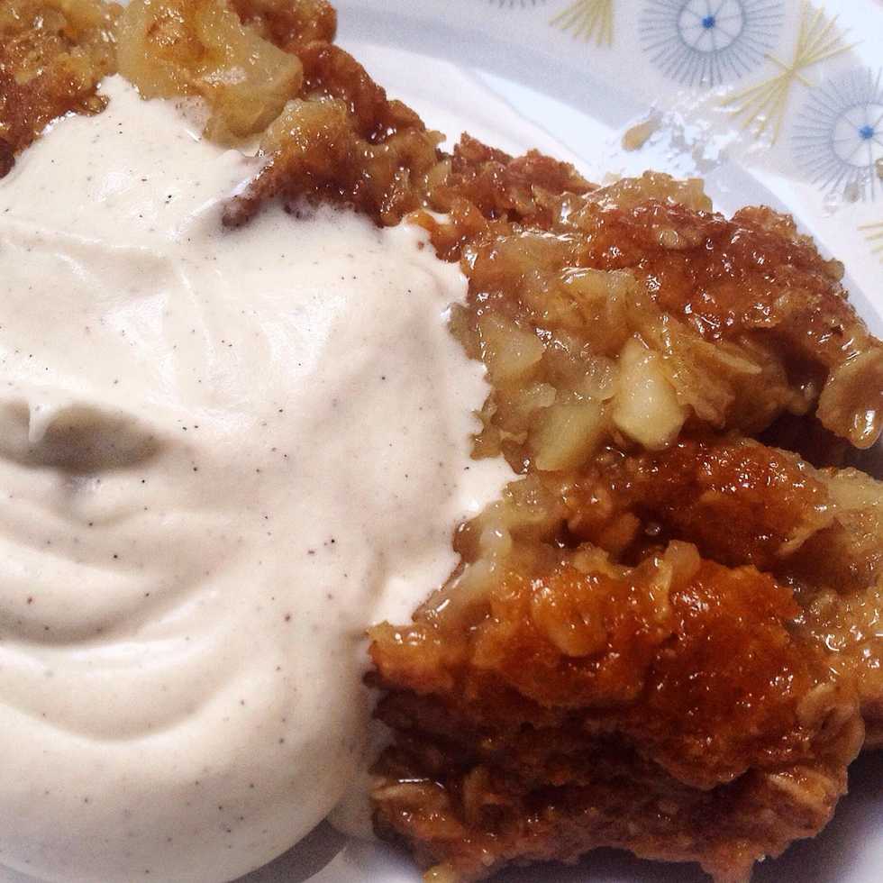 Cover the sliced apples with the yummy mix you have stirred together😀 Bake in the oven for about 30min.