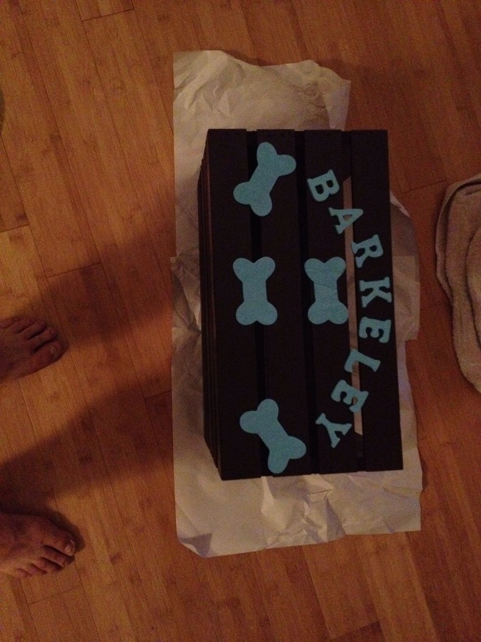Now that the paint has dried, position the letters and decorations to your liking, then apply a very small amount of gorilla glue to the back of the letters and decorations