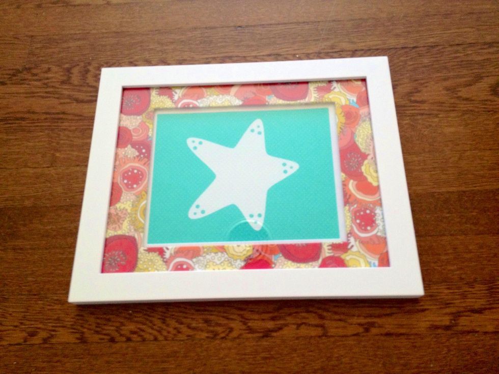 I taped paper to the paper that came with the frame and then used a vinyl decal that matched the wall decals in the room. The decal came from Dali Decals.