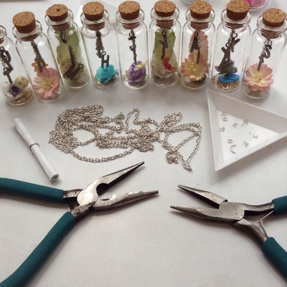 Arrange them in the bottle to your liking. I suggest you use a tweezer of sorts to arrange the materials.