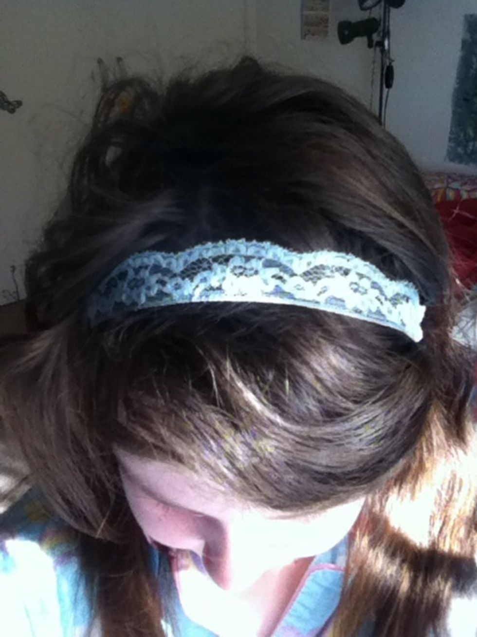 Measure a piece of ribbon by sitting the ends on the tips of your ears on both sides
