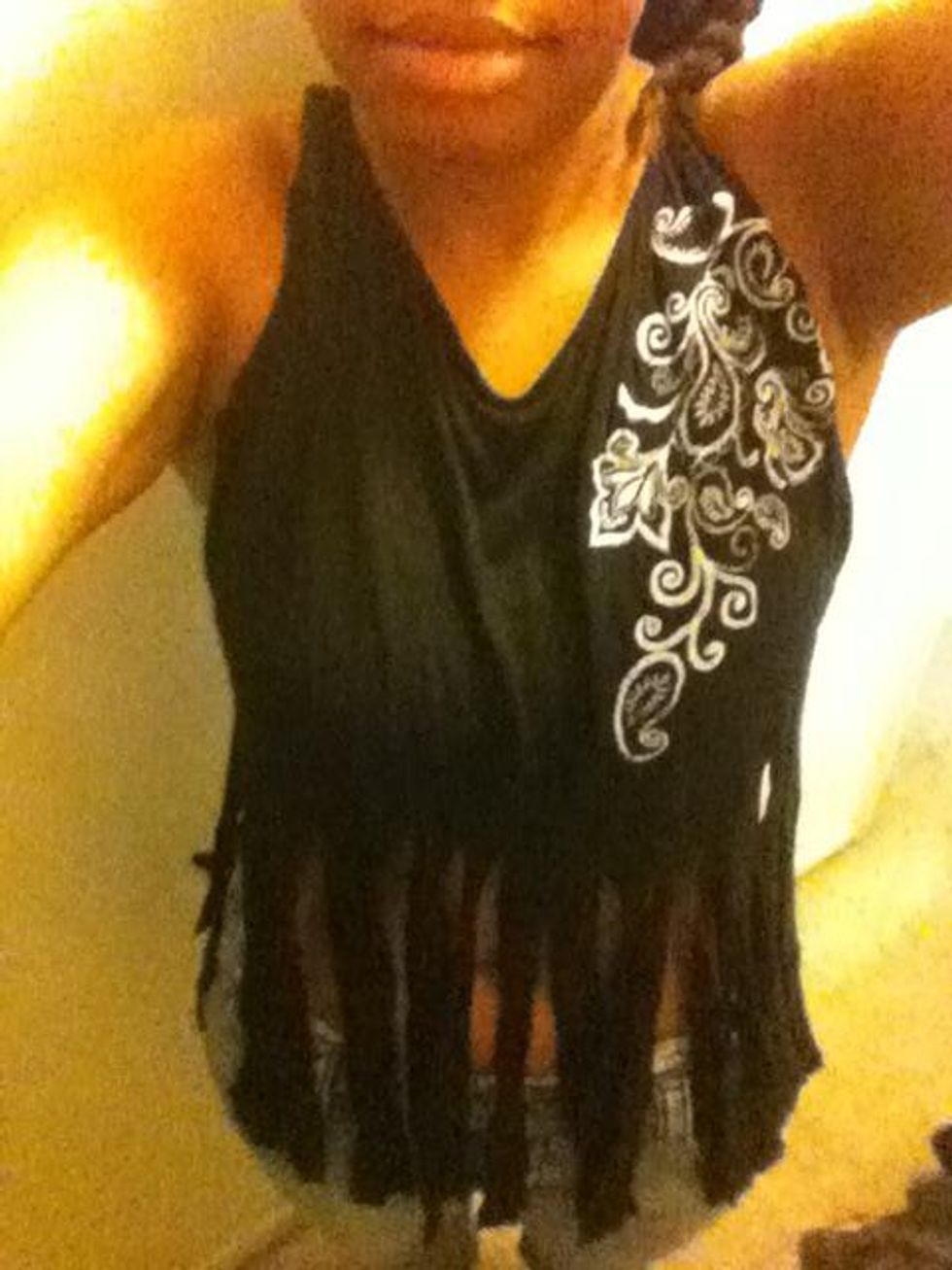 First You want to cut where the beads areLike so now you want to place your markers right above your belly button then you want to cut up words till you get to the other side of you shortNow you are done