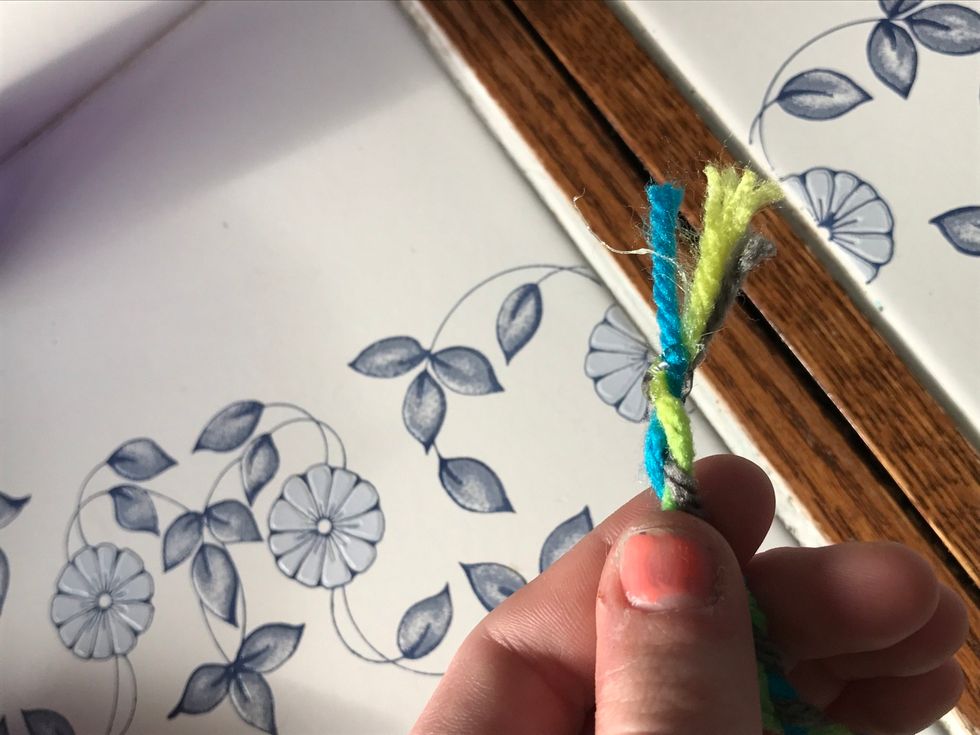 Get three 20" strands of yarn, I'm using yarn from jo Ann's fabric as craft store