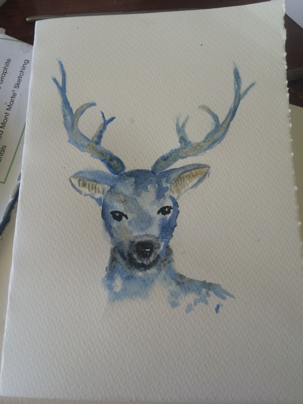 Add some brown to the ears and over the black to add depth. And start the antlers dont worry if the antlers arnt the same. Overlap the blue base colour with brown