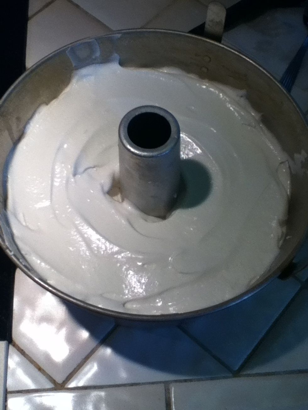 Scrape the batter into the Turks head pan. Smooth the top with a spatula or spoon.