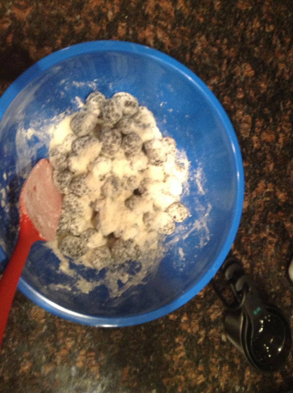Softly, combine 3 and a half cups of blackberries with flour and sugar