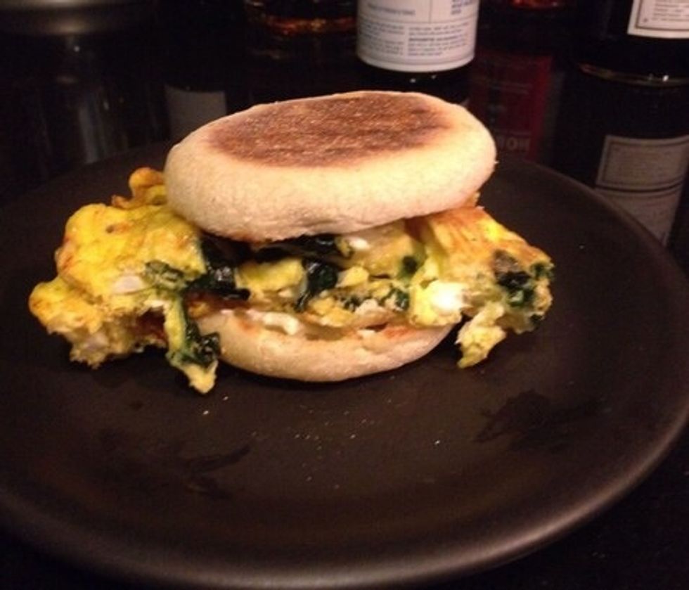 Flip the muffin halves and spread goat cheese on the already toasted side so it gets nice and melty.