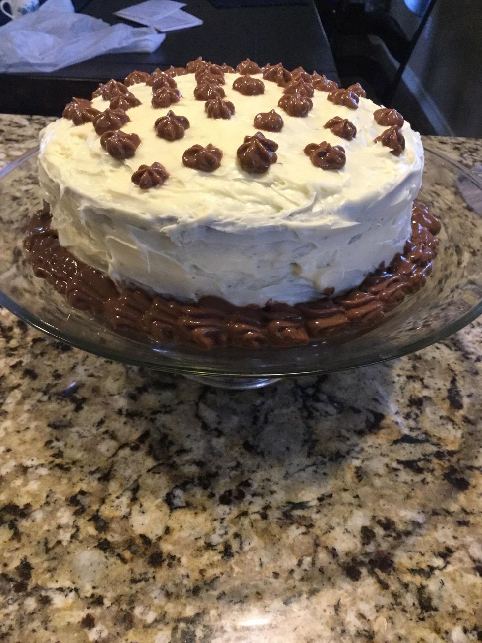 Since I had a ton of pudding left over, I piped stars/flowers on top of the cake with the tip "2D".