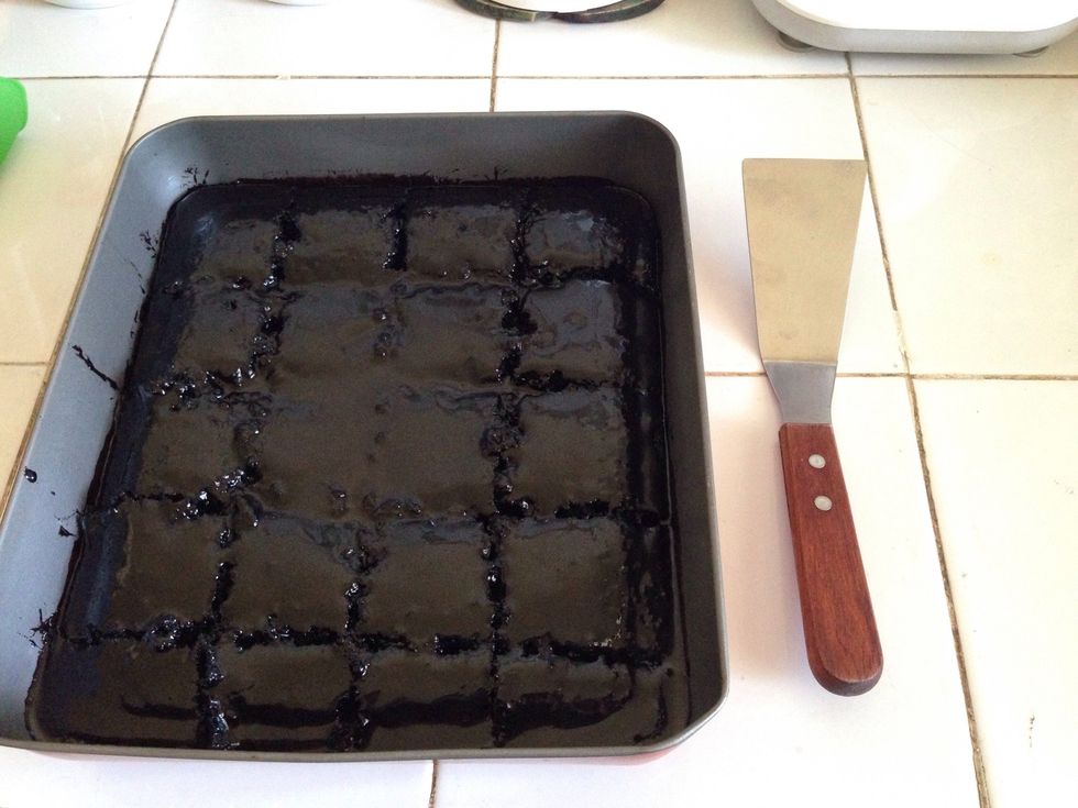 Let it cool and then cut it ( I didn't let it cool sorry I was in a hurry )cut in into square shapes