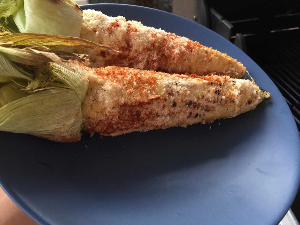 After grilling the corn, grab a tablespoon of mayonnaise and spread onto the corn.