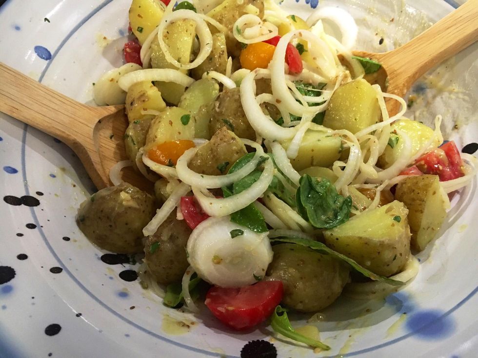 Pour it onto your favorite salad, here's one with potatoes, tomatoes, spring onion and other good stuff 😀