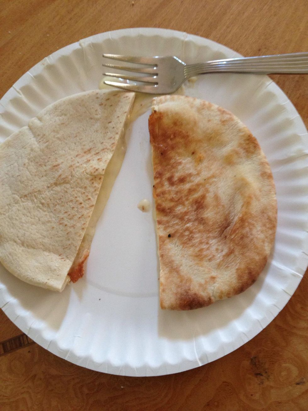 2 ingredients: Munster cheese and Pita breadCut in halfCut diagonally in half IMPORTANTAhhhh.... That's why. So it will fit insideMake sure you can fit the cheese inDone!!! Enjoyπππ