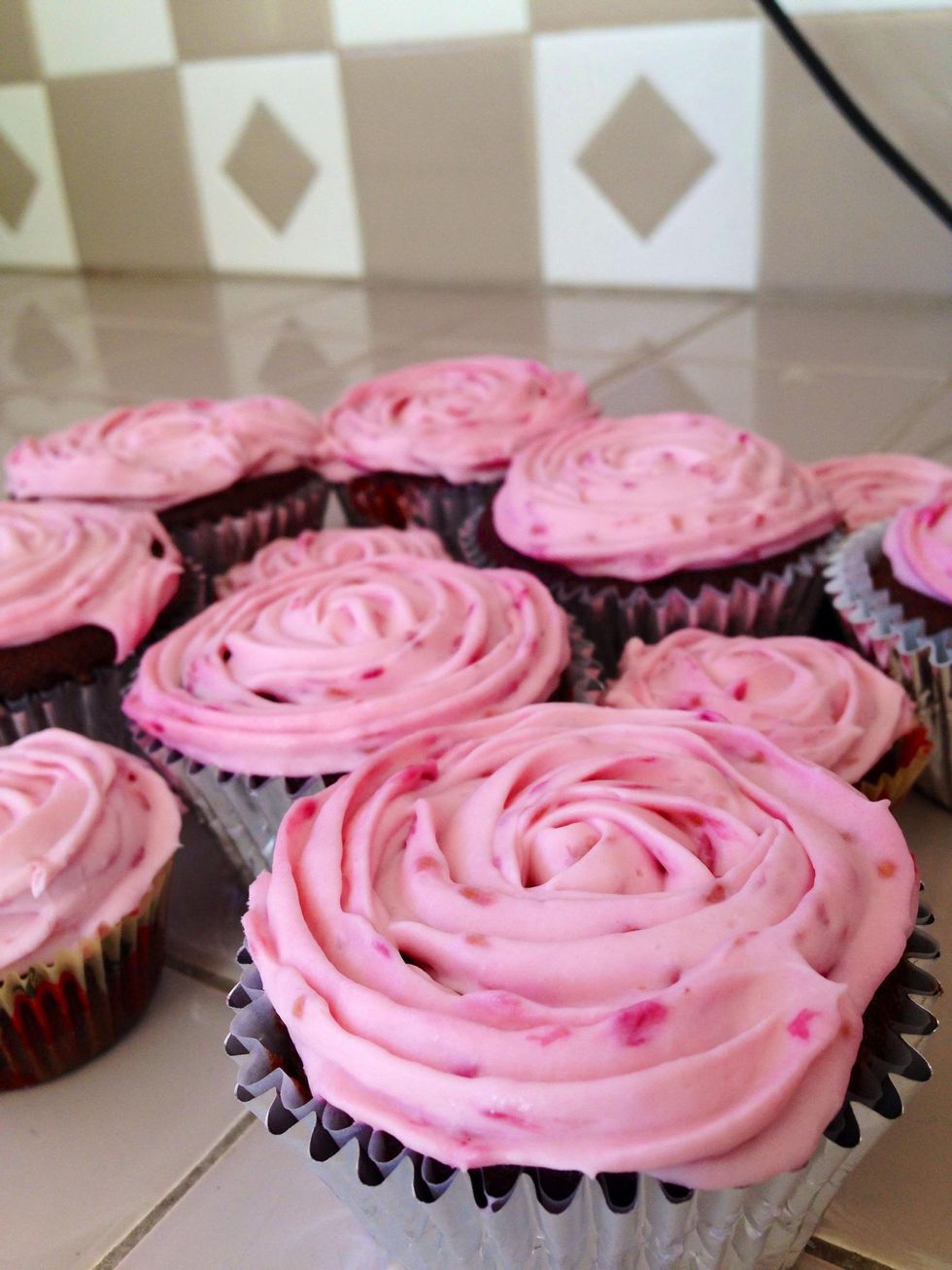 This is the final product on my chocolate rasberry cupcakes! Enjoy!