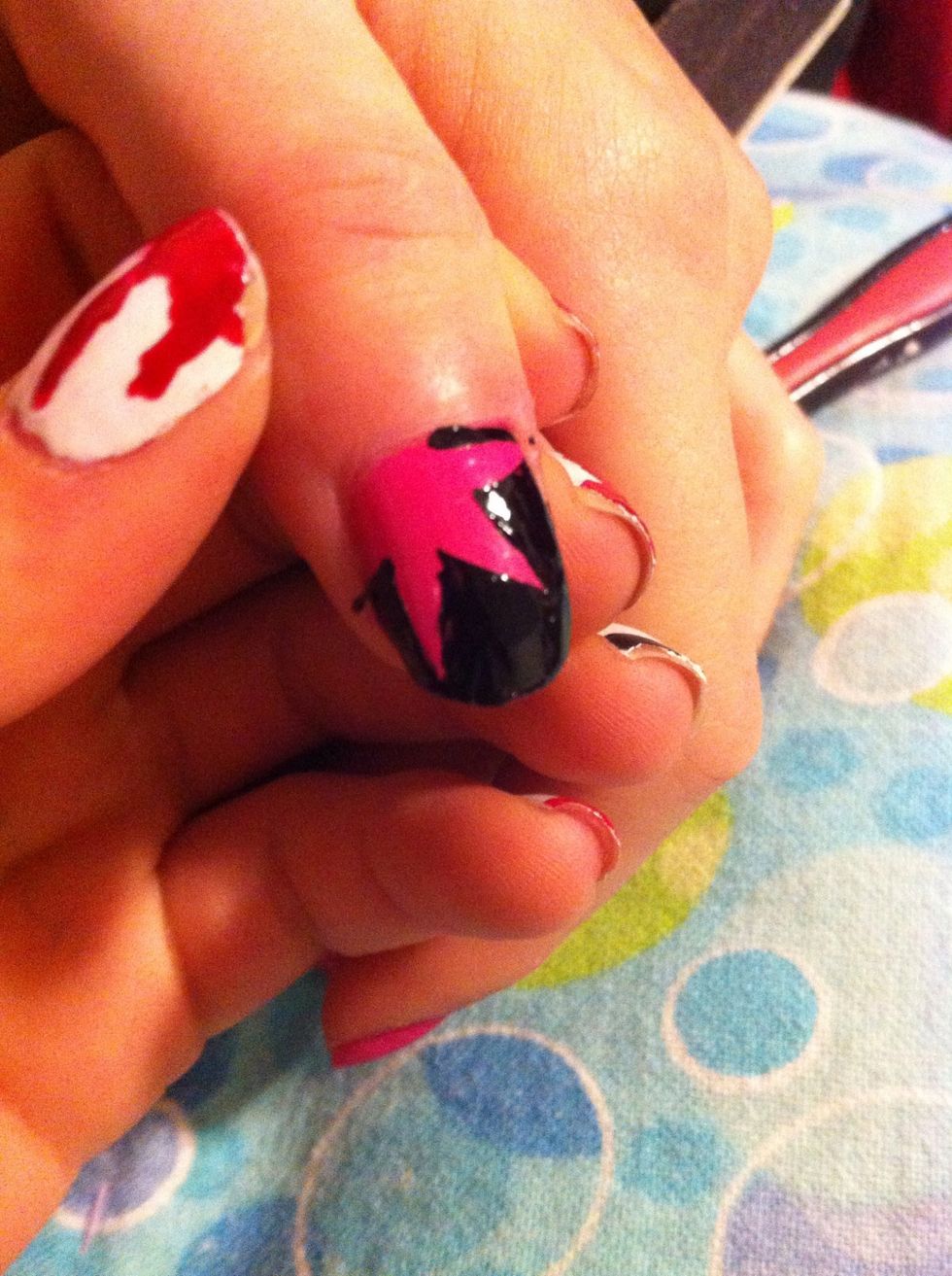 Paint your nail as shown with the other color