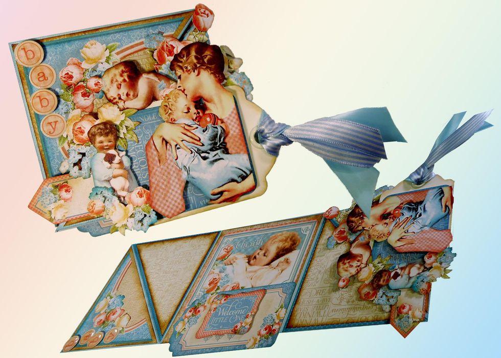 Before you begin to embellish the card plan how you want to layer your images. You'll only be gluing them to ONE of the triangles. You can overlap them, but don't glue them to the opposite triangle.