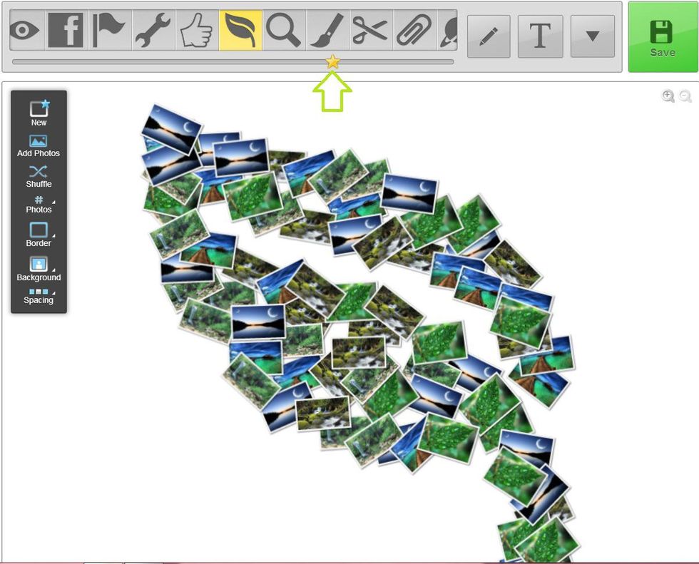 Select a template which can fit all your photos. Drag and drop the images to where you want them to be. Adjust the spacing between images and back ground color.