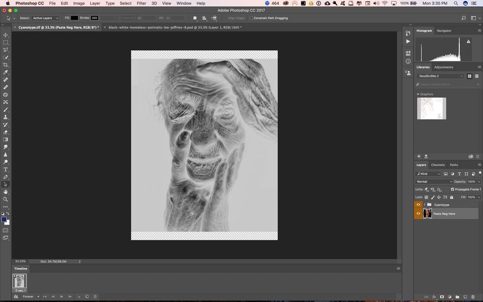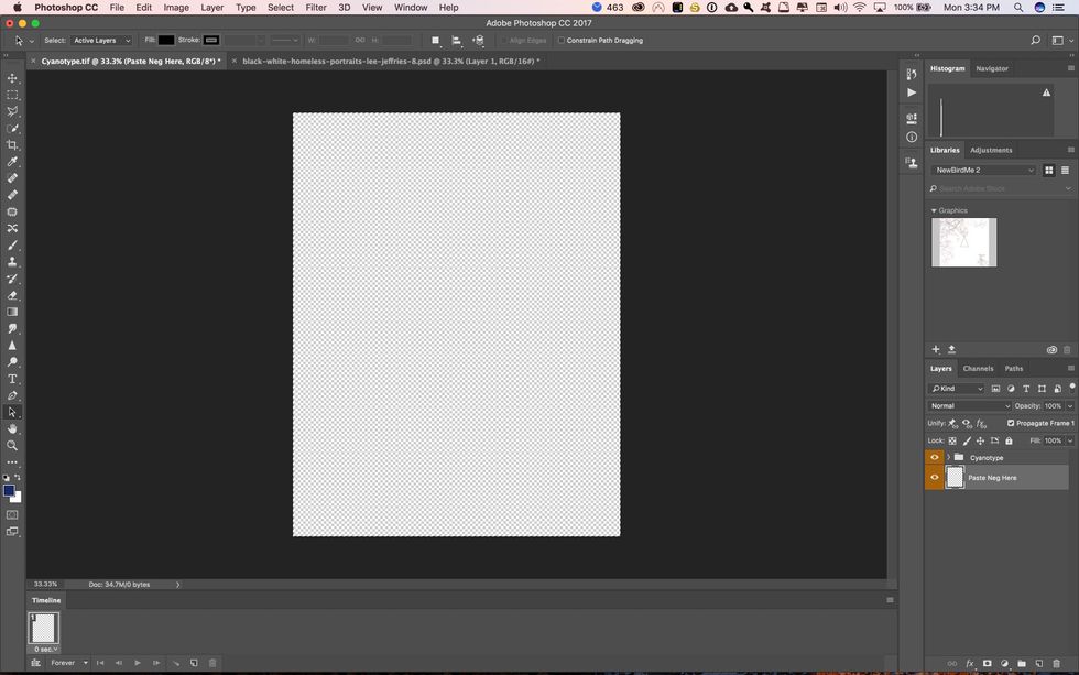 At this point you should see your image as a negative. Make sure you have the appropriate eyeball turned on next to the folder with the name of the process you are doing.