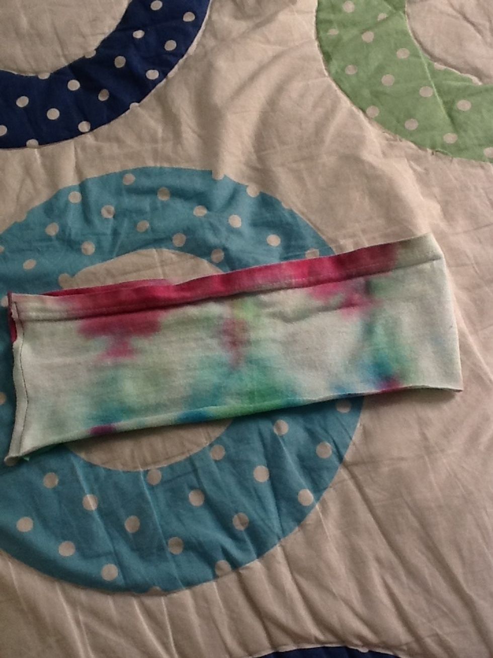 Hold your t-shirt up against you upside down so the hem is facing up and mark how long you want your bandeau to be(I used a pink marker incase I messed up)