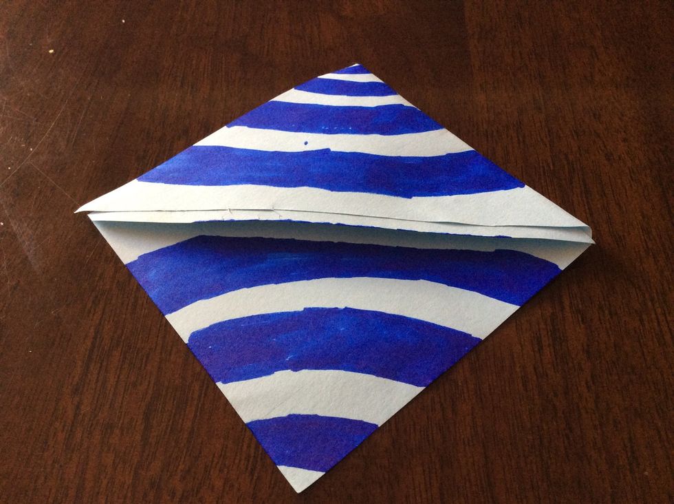 Then you fold the two triangles one on top of the other and glue the top one to the bottom one to look like this
