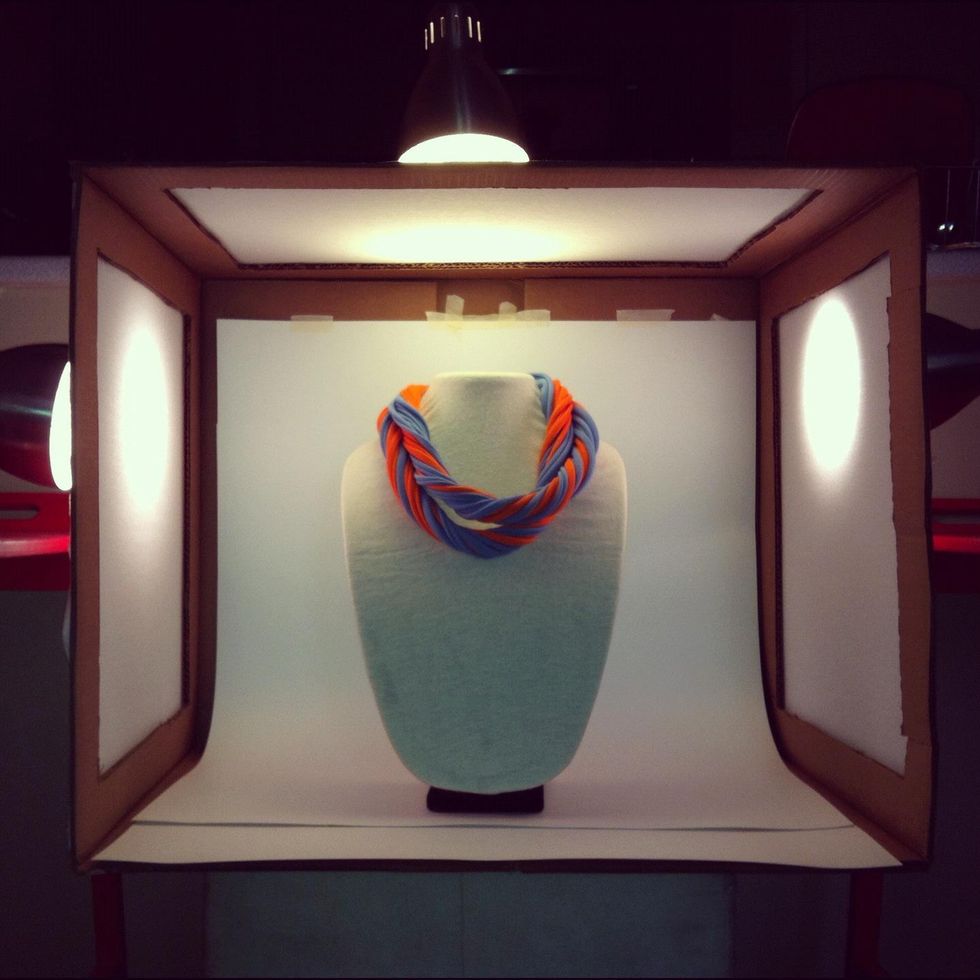 Now take some test shots! Adjust lighting away from the box if you have shadows & add more tissue paper to filter light as needed. My poster board is a bit too short here :( but you get the idea :)