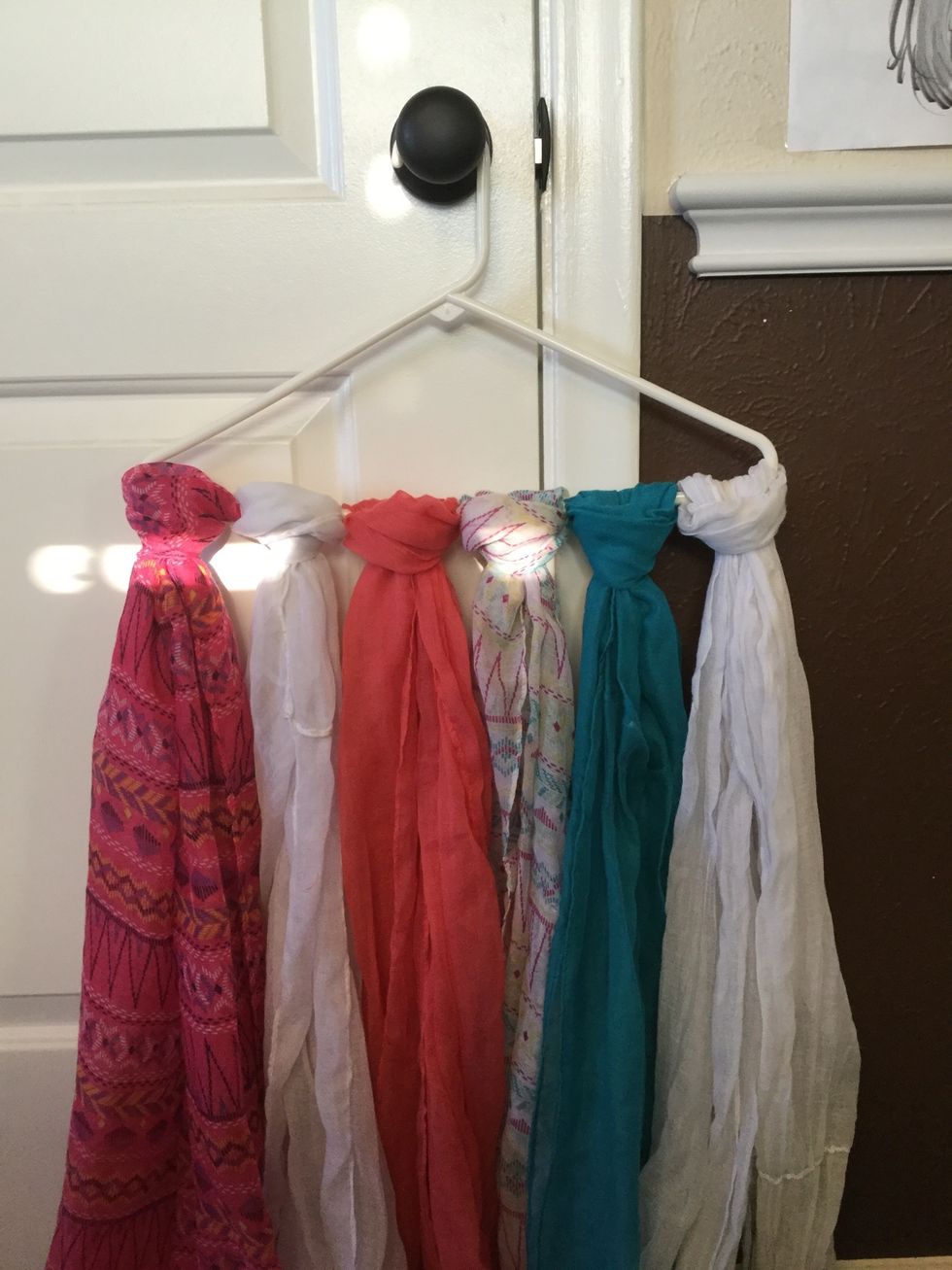 This is just to show how much space it saves to have like 11ish scarves on only two hangers! (I angled one of the hangers so that you could see all of the scarves.)