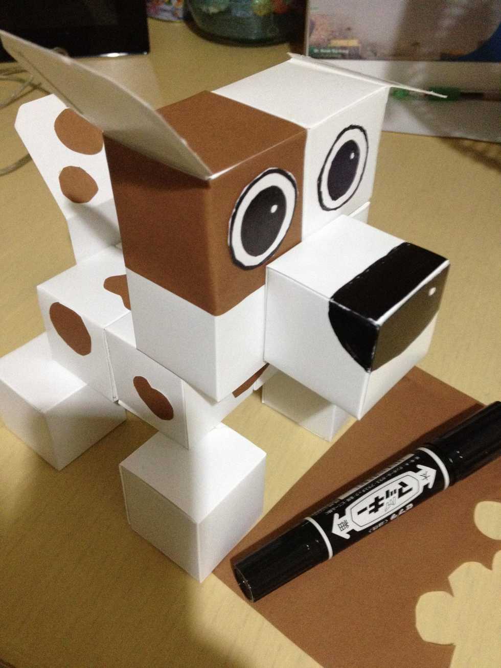 Paste this part onto one cube. This will be the ear of the dog. Repeat for another cube.